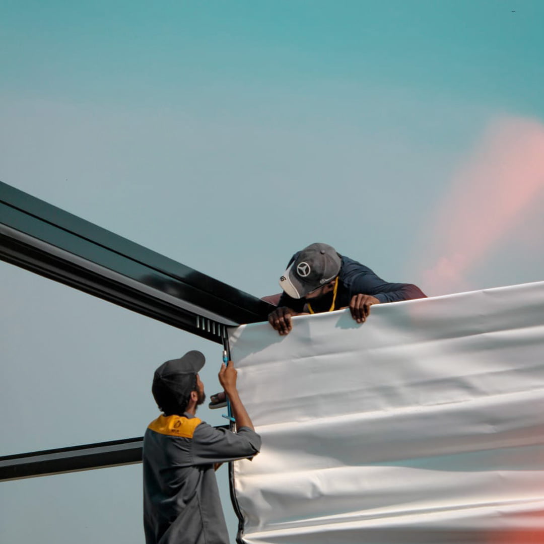 We love overcoming challenges, this retractable roof is one such beautiful challenge we undertook. Rooftops are always an added attraction in every skyscraper. But being weather ready at such heights can be tricky. We solved this issue without compromising the beauty of space. This retractable roof system was designed and executed by Hekur India.